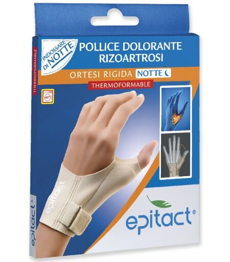 epitact - ORTESI RIGIDA RIZOARTROSI NOTTE THERMOFORMABLE - Descrizione L'ortesi correttiva notte aiuta ad alleviare i dolori articolari alla base del pollice e contribuisce a limitare l'evoluzione della rizartrosi. Mantiene il pollice in posizione di riposo aprendo la commessura fra l'indice e il p… ...