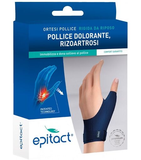 EPITACT - ORTESI POLLICE RIGIDA DA RIPOSO - Descrizione Immbolizza il pollice in posizione di riposo aprendo la commessura tra l'indice e il pollice. L'allineamento delle ossa limita le forze esercitate sull'articolazione trapezio - metacarpale ed allevia il dolore. Durante la notte e in tutte le s… ...