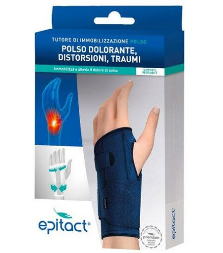 Tutore Immobilizzazione Polso Immobilizza e allevia il dolore al polso. Il tutore immobilizzatore per polso si apre totalmente per favorire il passaggio della mano. È munito di rinforzi (dorsale e palmare) per offrire al polso una posizione ottimale. I 2 cinturini simmetrici con chiusura a strappo permettono di centrare il rinforzo modellabile sotto il palmo della mano, mentre la cinghia rimovibile garantisce un fi ssaggio anatomico all’altezza del polso: immobilizza in modo rigido e accurato. Il rinforzo sul dorso della mano comprende un incavo che evita sollecitazioni sull’osso prominente del polso (stiloide). La stecca in alluminio è modellabile all’altezza del palmo e un cuscinetto sferico rimovibile permette di assestare la mano in posizione di riposo. Il tutore immobilizzatore EPITACT è molto leggero e perfettamente adatto a diverse morfologie; è inoltre davvero comodo poiché non ostacola mai il movimento delle dita. Avvertenze Con questo livello di gravità ...
