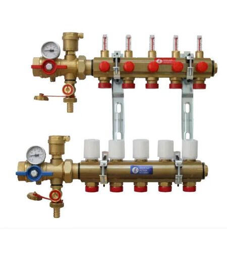 GIACOMINI - Collettore KITR553FK preassemblato con flussometro, 5 uscite.