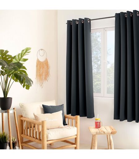 HOMEMAISON Enjoy Home Tenda Oscurante con Occhielli argentati, Grigio Scuro, 140 x 180 cm, 100% Poliestere, Tessuto Certificato Oeko-Tex, Collezione Liquirizia
