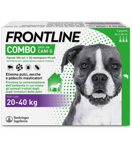 Frontline Combo Cani X3 Antiparassitario Contro Pulci, Zecche E Pidocchi (20-40K