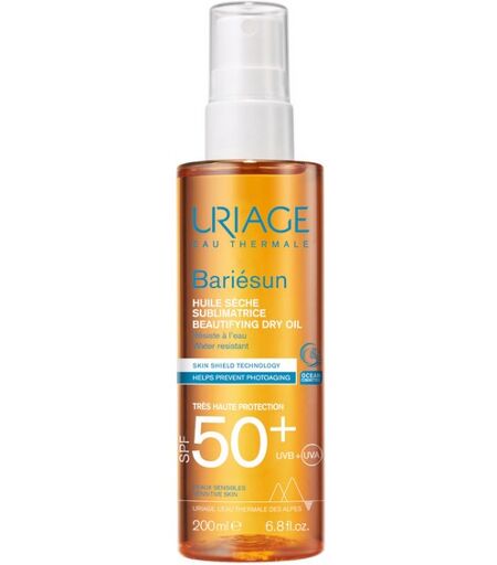 Un olio solare secco e illuminante che fonde protezione e piacere sensoriale: Uriage Bariésun olio secco SPF50+ è studiato per difendere viso, corpo e capelli dai raggi UVA e UVB con un fattore di protezione molto elevato. La sua formularafforza la barriera cutanea e contrasta il foto ...