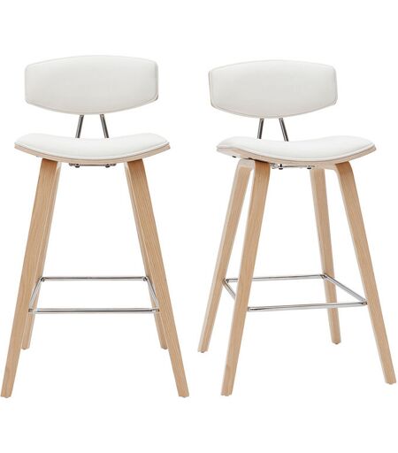 MILIBOO - Sgabelli da bar design bianco e legno chiaro H69 cm (set di 2) vasco