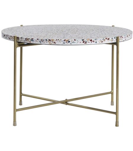 MILIBOO Tavolino salotto design tondo in terrazzo e metallo dorato D55 cm mezzo