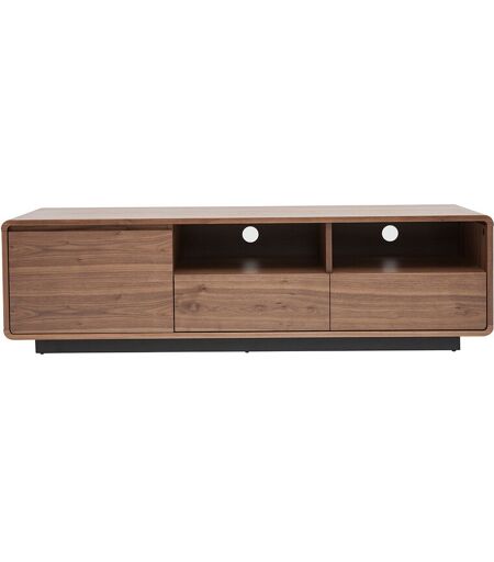 Il futuro protagonista dell'angolo TV... Scopri il mobile TV JAKO ! Questo mobile di carattere, dal design singolare, presenta una struttura dai volumi semplici , angoli arrotondati a cui il legno scuro dà risalto, e una base in metallo nero che gli conferisce un tocco moderno. Un mobile che darà carattere e riscalderà l'atmosfera del salotto. Curve, colori e materiali: questo mobile TV dall'aspetto robusto è a metà strada tra codici vintage e ispirazione contemporanea, due ambienti in cui questo mobile troverà facilmente posto. Funzionale e dalle dimensioni ben studiate (L160 x P42 x H45 cm) , JAKO offre innumerevoli ripiani e nicchie senza occupare troppo spazio! Grazie alle due nicchie aperte , ai due cassetti e alla capiente nicchia chiusa , non mancherà lo spazio per i dispositivi connessi, gli accessori hi-fi, le riviste e i piccoli oggetti di uso quotidiano. Due canaline passacavi posizionate strategicamente consentono di nascondere i cavi elettrici dei dispositivi digitali. ...