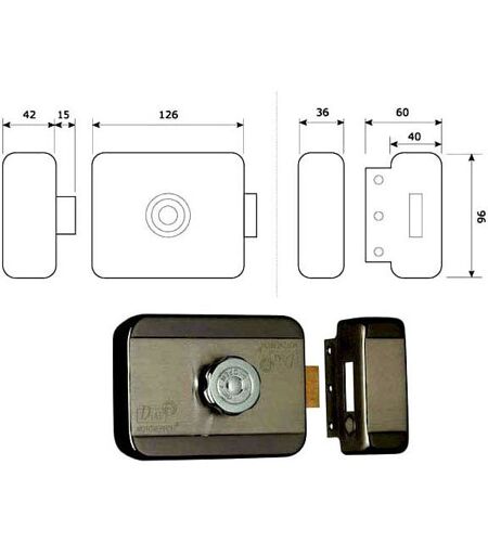Elettroserratura V 12 porte ferro applicare Acciaio lucido - Ingranaggi nylon Scrocco e mandata autobloccanti motorizzati Tettuccio protettivo - Cilindro e pomolo interno Ambidestra - Entrata mm 60Centralina controllo inclusa Chiusura automaticadopo 5 secondi Segnalatore acustico errore chiusura Cilindro tondo 3 chiavi Misure mm 120x100x87 ...