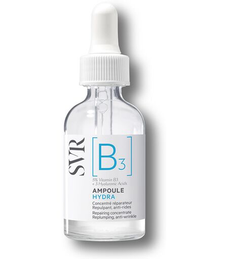 [B3] Ampoule Hydra Descrizione Concentrato idratante lenitivo. Effetto rimpolpante anti-rughe. per pelle sensibile, disidratata, rughe. Questa ampolla lenisce e protegge la cute sensibile grazie alla concentrazione del 5% di vitamina B3. La combinazione di tre tipi di acido ialuronico ripristinano l’idratazione cutanea. Fragilità e rossori sono immediatamente ridotti. Giorno dopo giorno la pelle diventa più tonica e morbida. 3 ore dopo l’applicazione: +50% di idratazione(1). Dopo 7 giorni: - +37% pelle levigata(2) - +33% pelle rimpolpata(2) - +28% elasticità cutanea(2) Dopo 28 giorni: - 82% la pelle fragile è riparata(3) - 82% la qualità della pelle è migliorata(3)Non-comedogena. Formula testate al 100% sulla pelle sensibile sotto controllo dermatologico. (1) Corneometria, 12 donne, 24h dopo l'applicazione (2) Auto-valutazione, 22 donne, 7 giorni, 2 applicazioni al giorno (3) Auto-valutazione, 22 donne, 28 giorni, 2 applicazioni al giorno Modalità d'uso Applicare mattina e sera prima della crema di trattamento, assieme alla crema di trattamento o assieme al siero. Evitare il contatto con gli occhi. Componenti Aqua/Water/Eau, Glycerin, Niacinamide, Isopentyldiol, Sodium Hyaluronate Crosspolymer, Hydrolyzed Hyaluronic Acid, Sodium Hyaluronate, 1,2-Hexanediol, Acrylates/C10-30 Alkyl Acrylate Crosspolymer, Caprylyl Glycol, Pentylene Glycol, Sodium Hydroxide.L'elenco degli ingredienti è soggetto a modifiche. Si consiglia di verificare l'elenco riportato sul prodotto acquistato. Formato Flacone da 30 ml Cod. 1010426 ...
