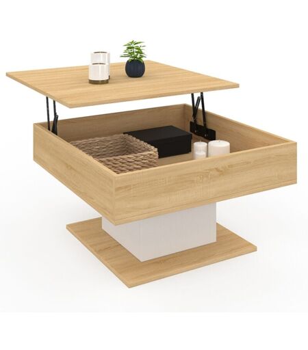 IDMARKET Mesa de centro cuadrada elevable eden de madera y blanco
