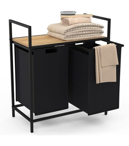 IDMARKET Detroit Cesto para la ropa de 2 compartimentos en tejido negro, diseño industrial