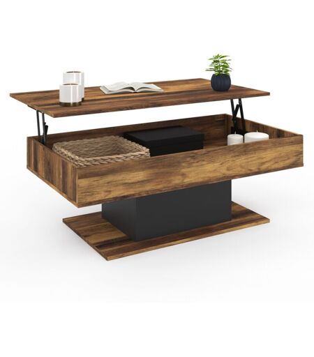 IDMARKET Mesa de centro eden con tablero elevable, madera oscura con efecto envejecido y negro