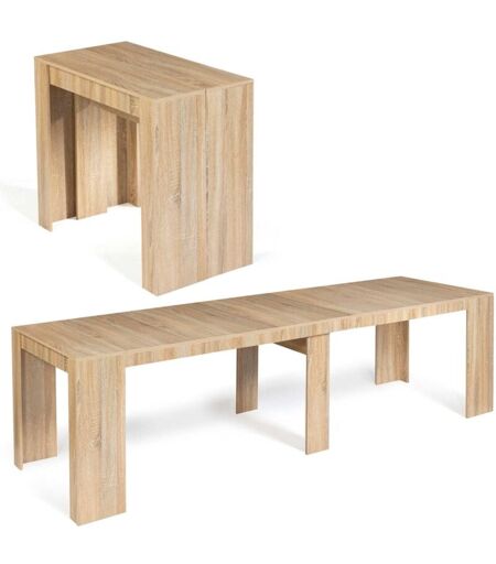 Siete alla ricerca di un mobile ultra-funzionale, multiuso e di tendenza per completare l'arredamento esistente e aggiungere un tocco di design alla vostra casa? La consolle allungabile ORLANDO in legno di faggio soddisferà tutte le vostre esigenze! Nella sua versione allungata, può ospitare fino a 14 persone intorno a questo tavolo da pranzo conviviale di 300x90 cm! Una volta ripiegato, potete utilizzare questa consolle 90x45 cm come mobile d'ingresso per riporre lattine di bevande, oggetti decorativi o piccole piante. Le sue linee massicce daranno carattere al vostro ingresso. Pratico e salvaspazio per eccellenza, può passare facilmente da una funzione all'altra grazie alle sue 5 prolunghe di 51 cm ciascuna. La solida struttura in truciolato di 1,5 cm di spessore gli conferisce stabilità e robustezza. Godetevi le cene con la famiglia e gli amici senza ingombrare la casa con questa consolle allungabile ORLANDO in legno di faggio! Dimensioni della consolle allungabile 90-300 cm ...