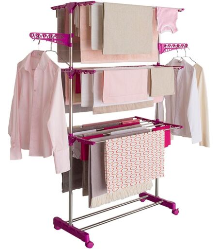 IDMARKET Maxima Asciugabiancheria verticale pieghevole a 3 livelli capacità 20M rosa