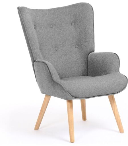 Adottate la tendenza chic e accogliente direttamente dalla Scandinavia con questa bellissima poltrona Ivar con schienale alto e imbottito in grigio chiaro. Elegante e raffinata, lasciatevi sedurre dal suo design arrotondato e dalla sua morbida seduta. Perfetto connubio tra eleganza e comfort, la poltrona Ivar starà benissimo in qualsiasi ambiente della casa: soggiorno, studio, camera da letto, corridoio.. Con una bella seduta imbottita (L.45 x L.50 cm) e due comodi braccioli, questo mobile sarà il compagno perfetto per i vostri momenti di lettura tranquilla o per guardare la televisione. Per personalizzare l'interno e creare un vero e proprio bozzolo di comfort, aggiungete uno o due cuscini o un soffice e caldo copriletto. Vi piace la combinazione di legno e tessuto grigio chiaro? Allora scegliete una poltrona in stile scandinavo per un interno accogliente e di tendenza. Il rivestimento in tessuto 100% poliestere e i 6 bottoni con finiture finemente lavorate completano il suo design ...