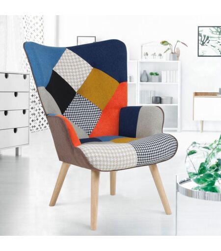 IDMARKET - Poltrona scandinava ivar in tessuto patchwork multicolore e stampa pied-de-poule