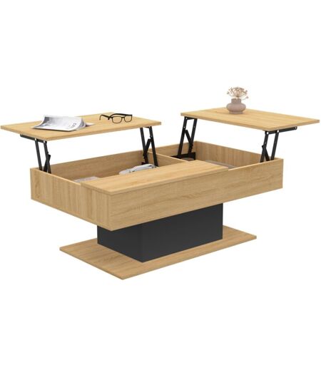IDMARKET Mesa de centro con 2 tableros elevables eden madera y negro