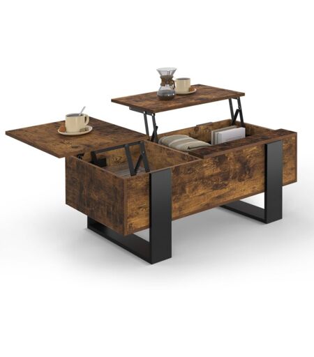 IDMARKET - Mesa de centro phoenix con 2 tableros elevables en madera envejecida y negro