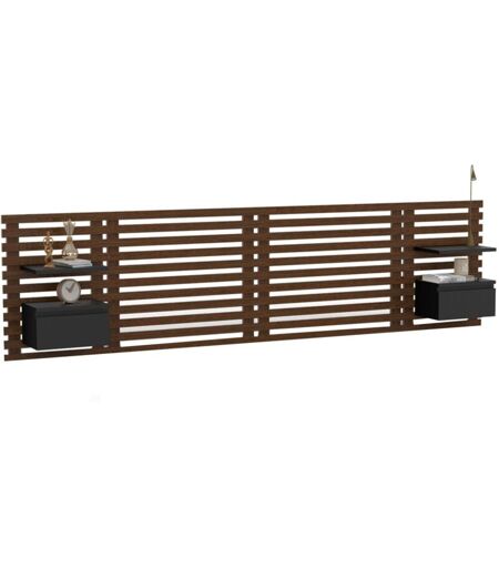 IDMARKET Cabecero de lamas ava con madera antigua de 240 cm y muebles altos negros