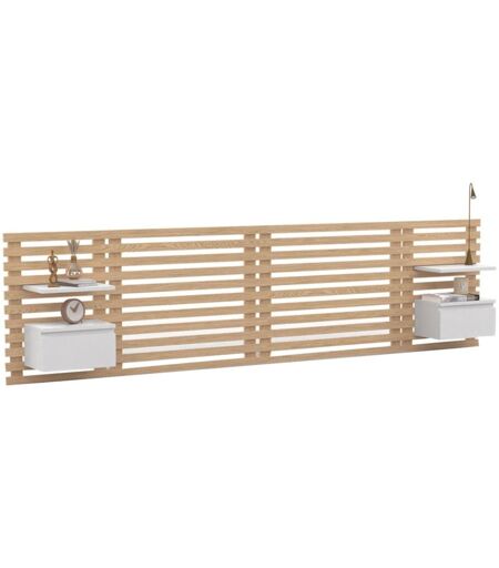 IDMARKET Cabecero de lamas ava con mesillas colgantes 240 cm madera clara y blanco