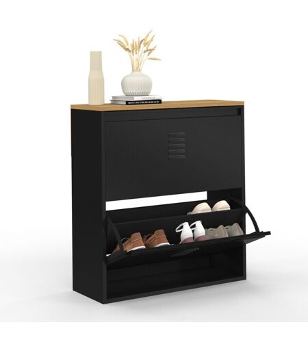 IDMARKET - Scarpiera ester da 12 pezzi, 2 ante in metallo nero, design industriale