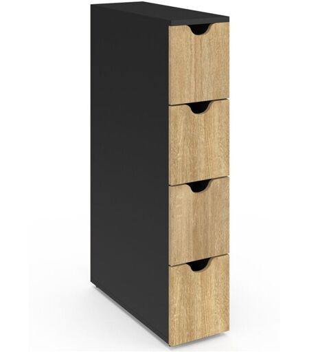 IDMARKET Colonna salvaspazio wilo a 4 cassetti su rotelle in look nero e faggio