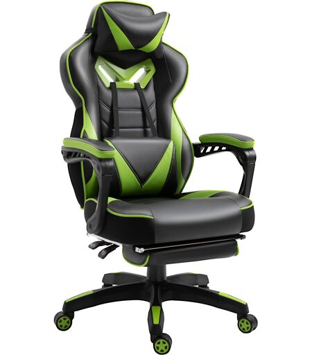 Vinsetto Sedia da gaming Ergonomica, Poltrona da Ufficio confortevole con Poggiapiedi, Poggiatesta e cuscino lombare, Altezza Regolabile, Nero e verde