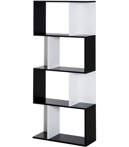 Homcom Libreria Scaffale Mobile da Rangement di Design Contemporaneo a Forma di S 4 mensole 60L x 24l x 148H cm Nero Bianco
