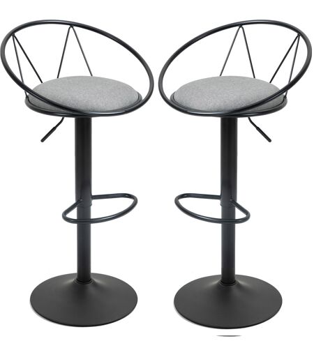 Homcom Set di 2 sgabelli da Bar Design neo-retro regolabili girevoli con Poggiapiedi in Metallo Nero Lino Grigio