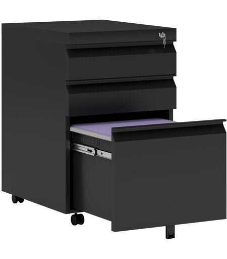 Vinsetto HOMCOM Mobiletto per ufficio con ruote, 3 cassetti bloccabili, 39 x 48 x 60 cm nero