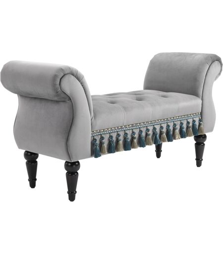 Homcom Banquette Capitonnée in Velluto con Braccioli e Piedi in Legno d'Hevea Grigio 40P x 117L x 58H cm