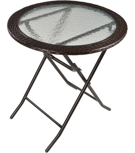 Outsunny Tavolo rotondo bistrò da giardino pieghevole dim. Ø 68 x 73H cm metallo epossidico resina intrecciata cioccolato piano vetro temperato