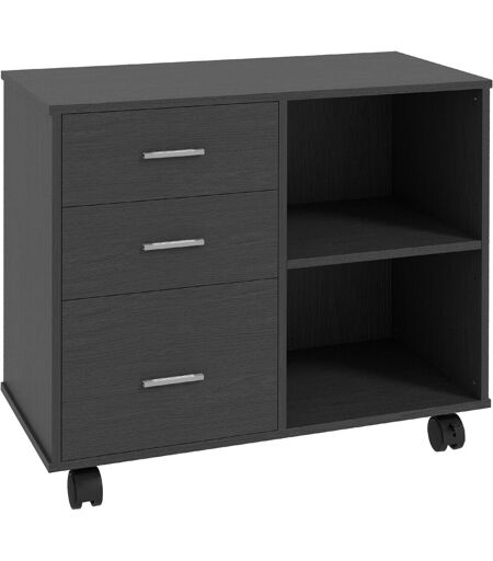 Homcom Supporto stampante organizer da scrivania cassettiera 3 cassetti + 2 nicchie + ampio piano pannelli particelle nero