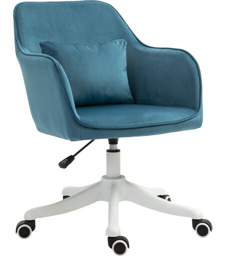 Homcom sedia da ufficio in velluto con funzione massaggio con cuscino lombare integrato altezza regolabile girevole a 360° - blu