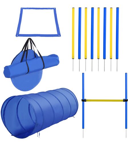 Pawhut Attrezzatura sportiva di agilità per cani completo ostacolo, tunnel, slalom, zona riposo + sacca di trasporto blu giallo