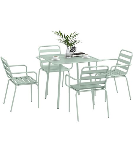 Outsunny Salon de jardin insieme da pranzo da giardino 5 pezzi con 1 tavolo e 4 sedie impilabili in acciaio verde