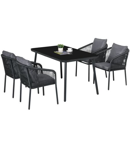 Outsunny Set da Giardino 4 persone in rattan PE con sedie impilabili e cuscini, piano in vetro temperato, struttura in alluminio