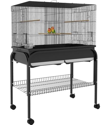 Pawhut Grande gabbia uccelli gabbia per pappagalli con supporto ruote per cacatua pappagalli canarini pappagalli 85 x 49 x 119 cm nero
