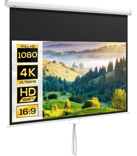 Homcom Schermo per Proiezione TV e Home Cinema 80 Pollici 16:9 4K HD, fissaggio a muro o soffitto, 187 x 8 x 150 cm