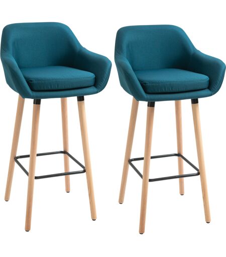 Homcom Sgabelli da Bar Design Scandinavo - Set di 2 Sgabelli da Bar Grand Confort con Poggiapiedi e Braccioli - Legno Massiccio Lino Blu