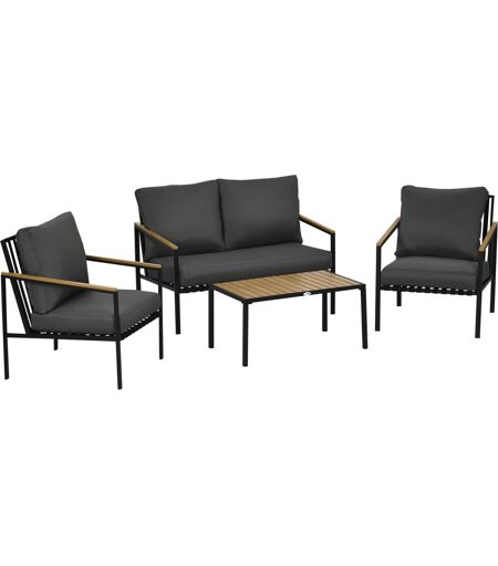Outsunny Set da giardino 4 pezzi per 4 persone con divano a due posti poltrone e tavolino 8 cuscini nero grigio scuro