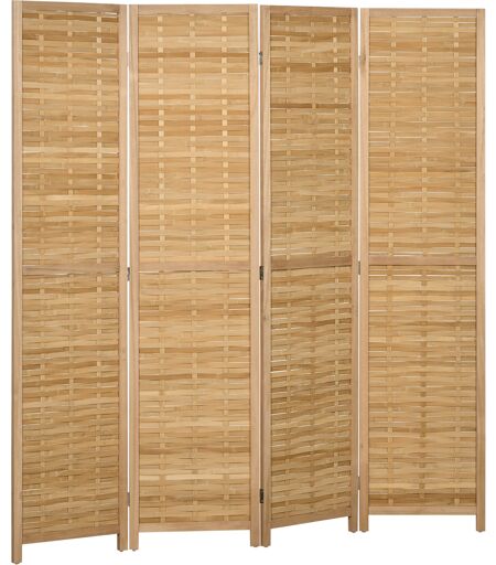 Homcom Paravento in legno separatore di ambienti divisorio pieghevole 4 pannelli in bambù 160 x 170 cm naturale chiaro