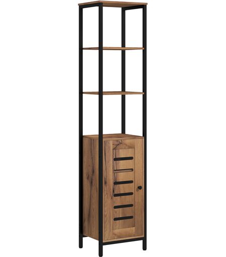 Kleankin Mobile Colonna Bagno Industriale 3 Ripiani Aperti Porta a Doghe Ripiani Regolabili Marrone Rustico
