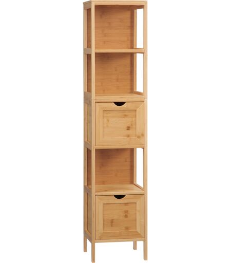Kleankin Mobile di archiviazione colonna per bagno in bambù 2 cassetti rimovibili e 3 ripiani 30 x 30 x 140 cm naturale