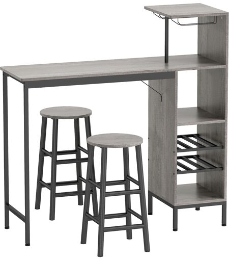Homcom Set tavolo da pranzo alto con 2 sedie da bar, con ripiani e portabottiglie, Legno naturale Aosom Italy