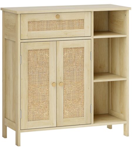 Homcom Credenza in legno con 2 porte in rattan, cassetto, nicchie aperte e mensole regolabili, 75x30x79,5cm, Legno naturale Aosom Italy