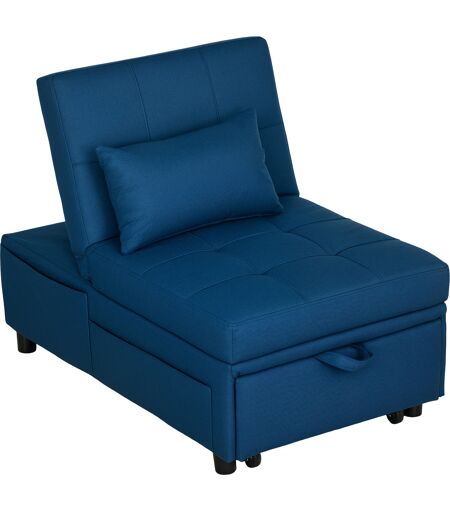 Homcom Poltrona convertibile 1 posto poltrona letto con schienale regolabile, sedile imbottito e cuscino, blu