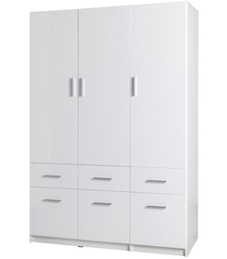MODELLO: Armadio tre porte sei cassetti collezione FLEX- DIMENSIONI: L 136 x H 198 x P 54 cm- COLORE: Bianco lucido- STRUTTURA: Pannelli di particelle, metallo e MDF di prima qualità- TIPO: Design, moderno e alla moda- COMPOSIZIONE: Armadio 3 porte 6 cassetti della collezione FLEX con guardaroba e scaffali.- MONTAGGIO: Facile grazie alle istruzioni di montaggio.Questo mobile sarà pratico per ottimizzare la sistemazione. ...