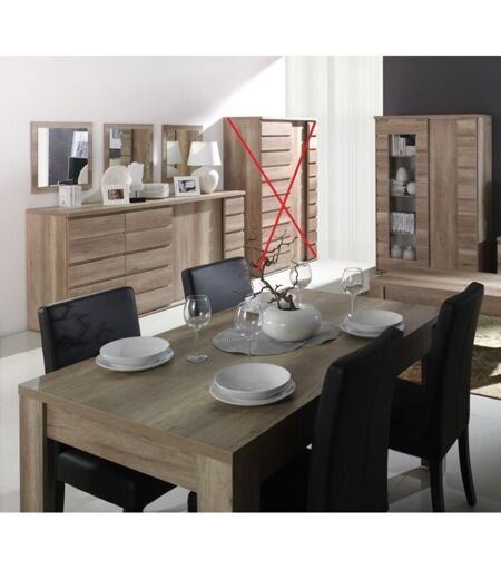 MEUBLORAMA Sala da pranzo completa romi - Credenza, vetrina, tavolo 180 cm e 3 specchi - Rovere dab canyon