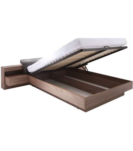 MEUBLORAMA Letto contenitore renato 160x200 con doghe e comodini con led colore noce