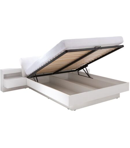 MEUBLORAMA - Letto contenitore renato 180x200 cm colore bianco con rete a doghe e comodini con led – 291 x 90 x 236 cm
